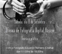 O Instituto Venha Conosco Viver com Arte vai realizar, no dia 8 de setembro, no Rio de Janeiro, uma oficina de introdução à fotografia digital básica teórica, ministrada por Eduardo 'Orelha' (http://www.flickr.com/photos/orelha/collections).